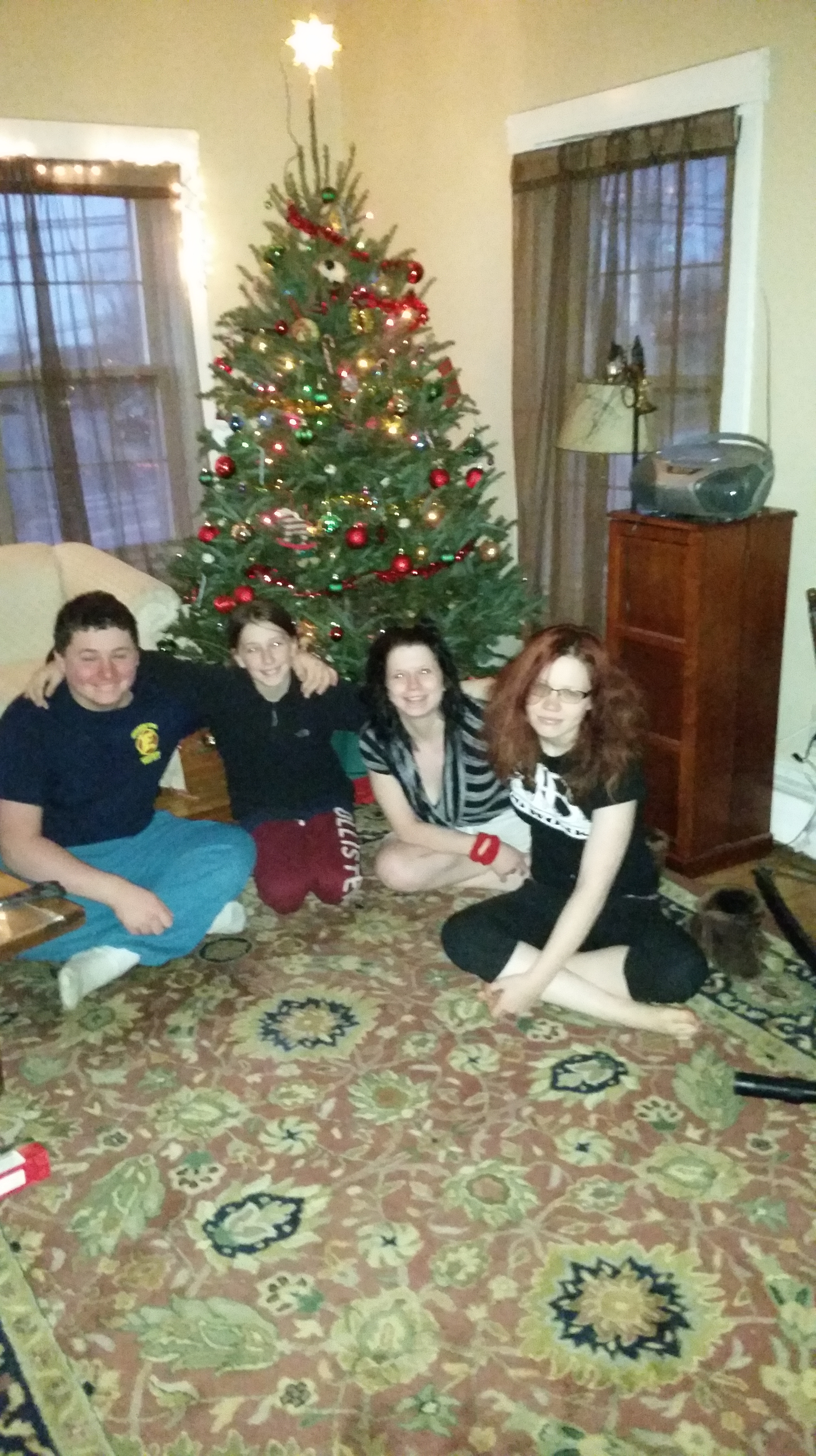 It is often I sit, butt in chair, uninspired and push the word across the page. I cannot wait for inspiration but must dig and tunnel for it from the depths of my person. So…. what happened over Christmas vacation? Not much. And a lot. It was our first Christmas in our apartment, away from the seeming warmth and comfort of having a Christmas in a house with a fireplace and a chimney. We did all the same things we usually do, we got the tree, we bought some new decorations and dug up some old ones (thanks mom). Things seemed to just flow. I remember years of arguing and manipulating the tree to get it just right in the stand, often pulling out our hair out and resorting to full swearing, then wiring the damn tree, and letting the cat outside for the season, with force. Turns out, it wasn’t that bad and I am sure God smiled on us, we five, in our 4 bedroom flat, living on a prayer and a shoe string. The tree went up without a hitch, in the stand and no swear words were involved. Jack, my sturdy 13 year old, helped with that. Then I got the lights up, the garland, easy peasy. The kids decorated the whole thing independently, I did not put up one single ornament. Caroline added lights around the windows and put up the stockings. It was truly beautiful and my seasonal affect started to creep upwards.